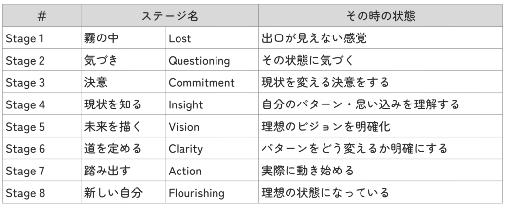 継続コーチングでは、以下のステージに沿って変化を促していきます。
